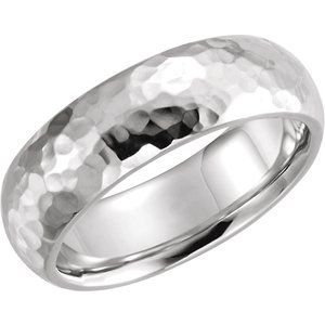 / 10K White 7 mm Half Round Band with Hammer Finish Size 4