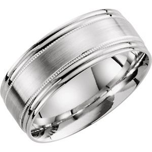51291 / 10K White / 9.5 / 8 Mm / Polished / Light Weight Comfort-Fit Grooved Milgrain Band