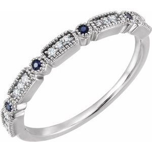 652287 / Set / 14K White / Diamond And Sapphire / 7 / Polished / .06 Ctw Diamond And Sapphire Anniversary Band