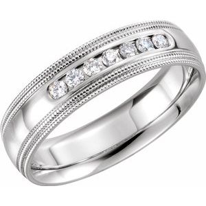 14K White 1/4 CTW Diamond Half Round 6 mm Double Milgrain Size 8.5