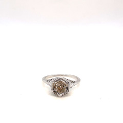 / Antique Mine-Cut Champagne Diamond Solitaire Ring