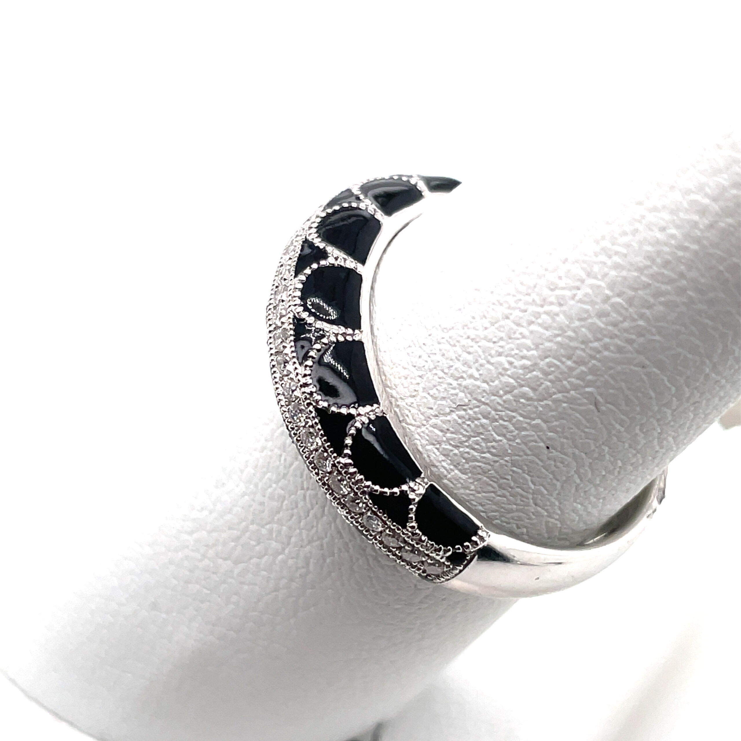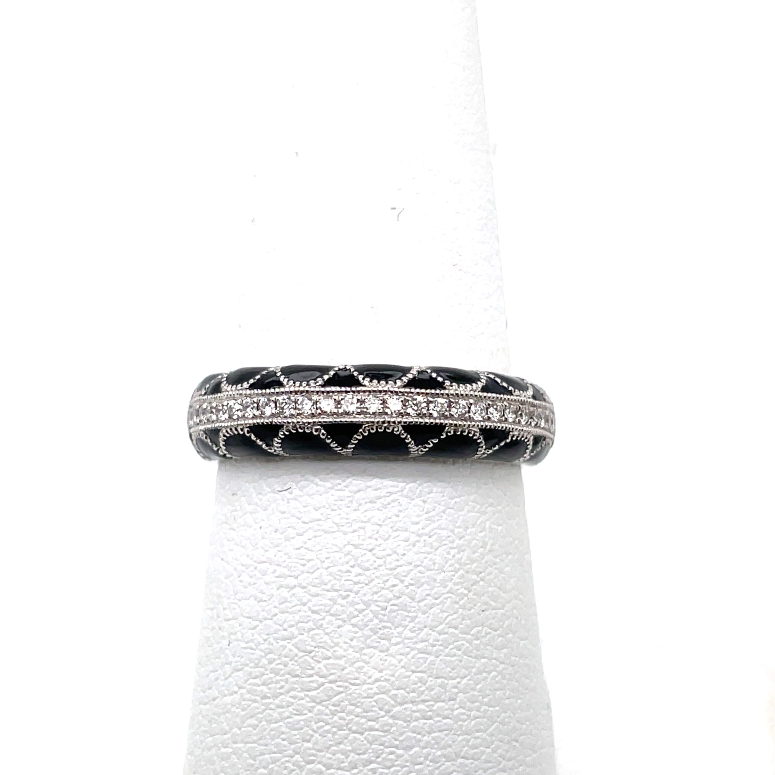 Black Enamel and Diamond Band in 18KWG. Diamonds to equal 0.12ctw.