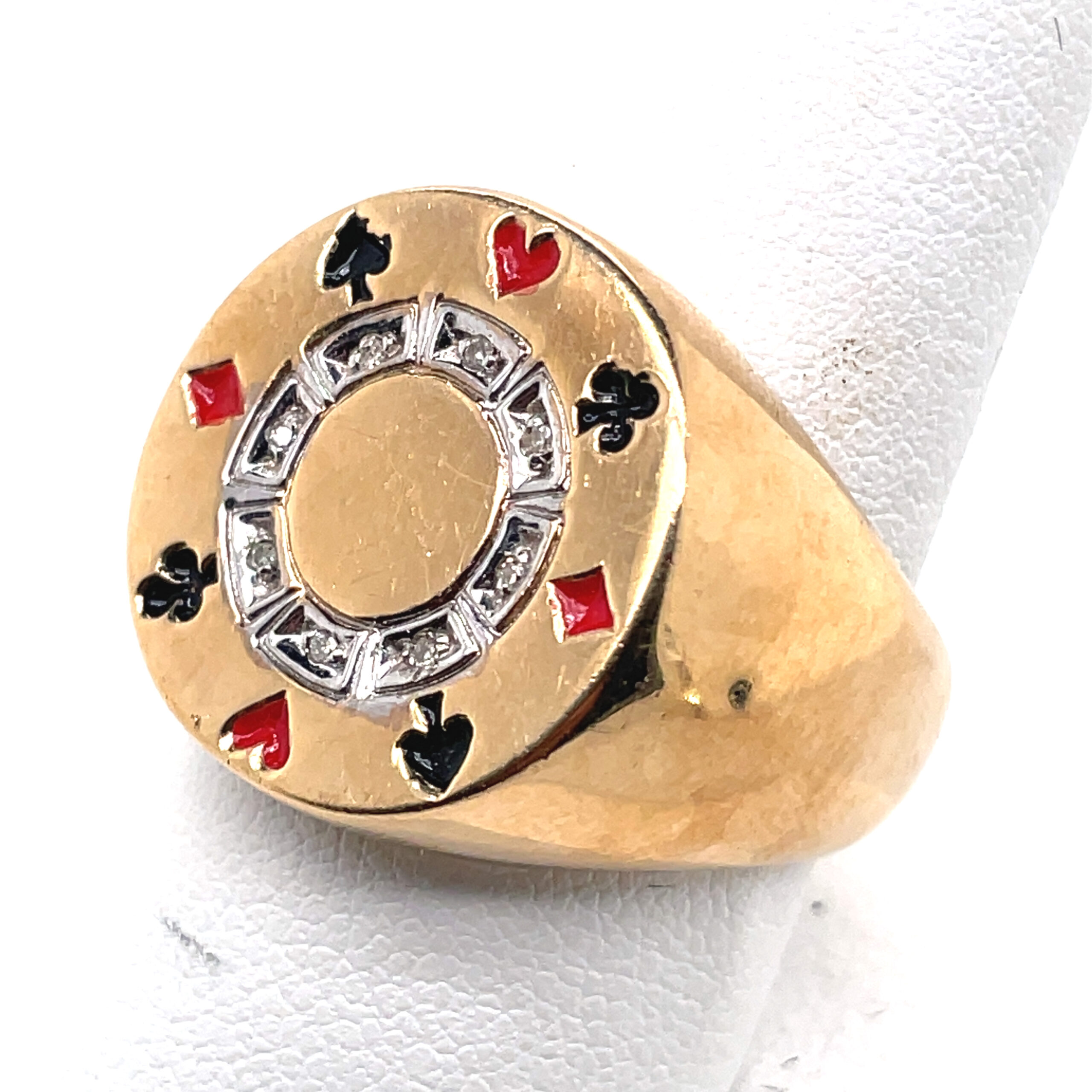 Card Suits Ring with Diamonds in 10KYG, Size 10