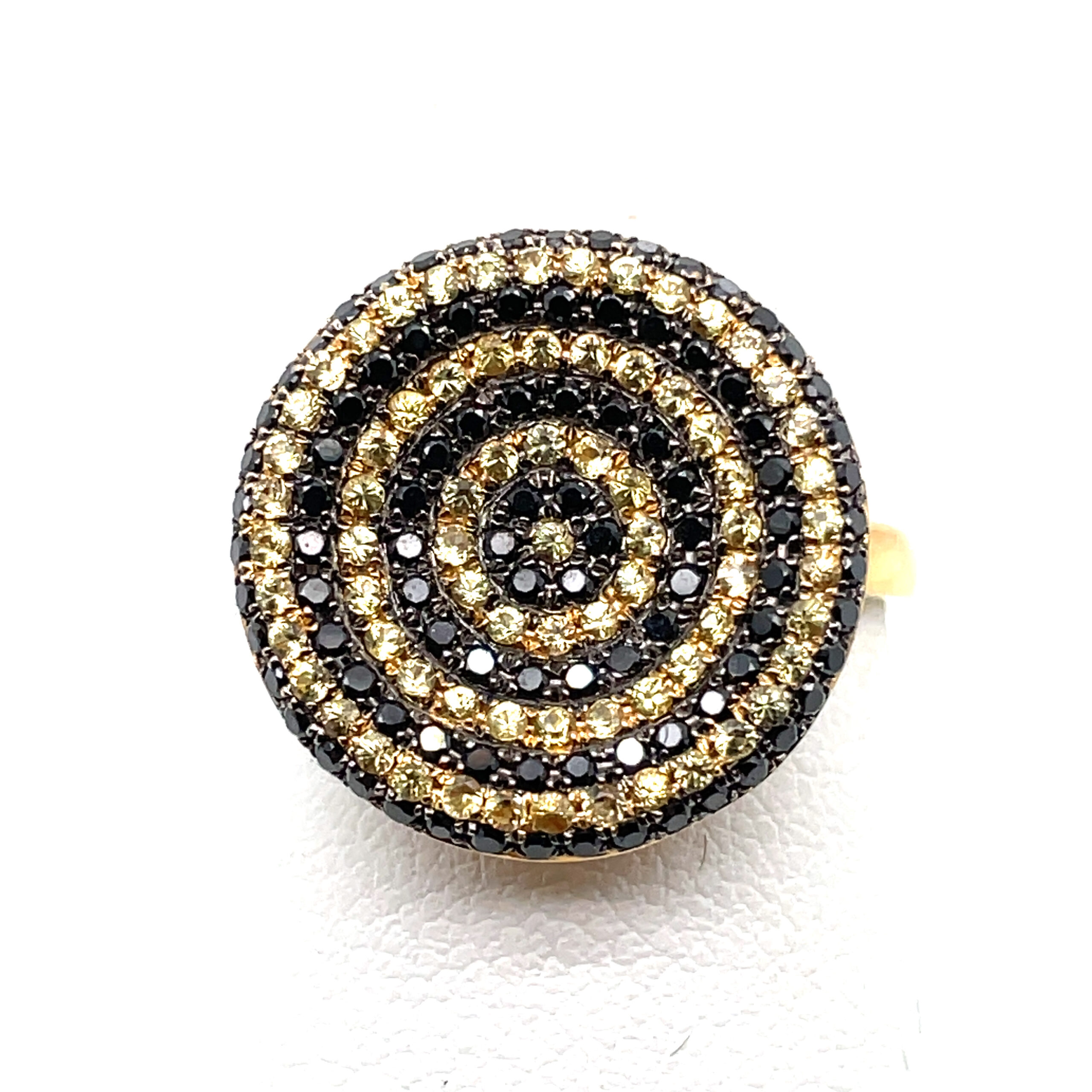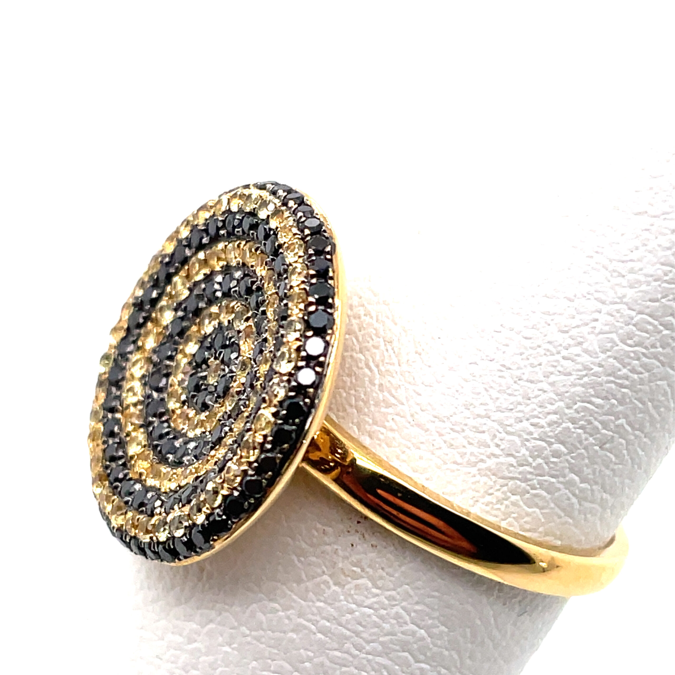 Concave Dome Black and Yellow Diamond Ring in 18KYG