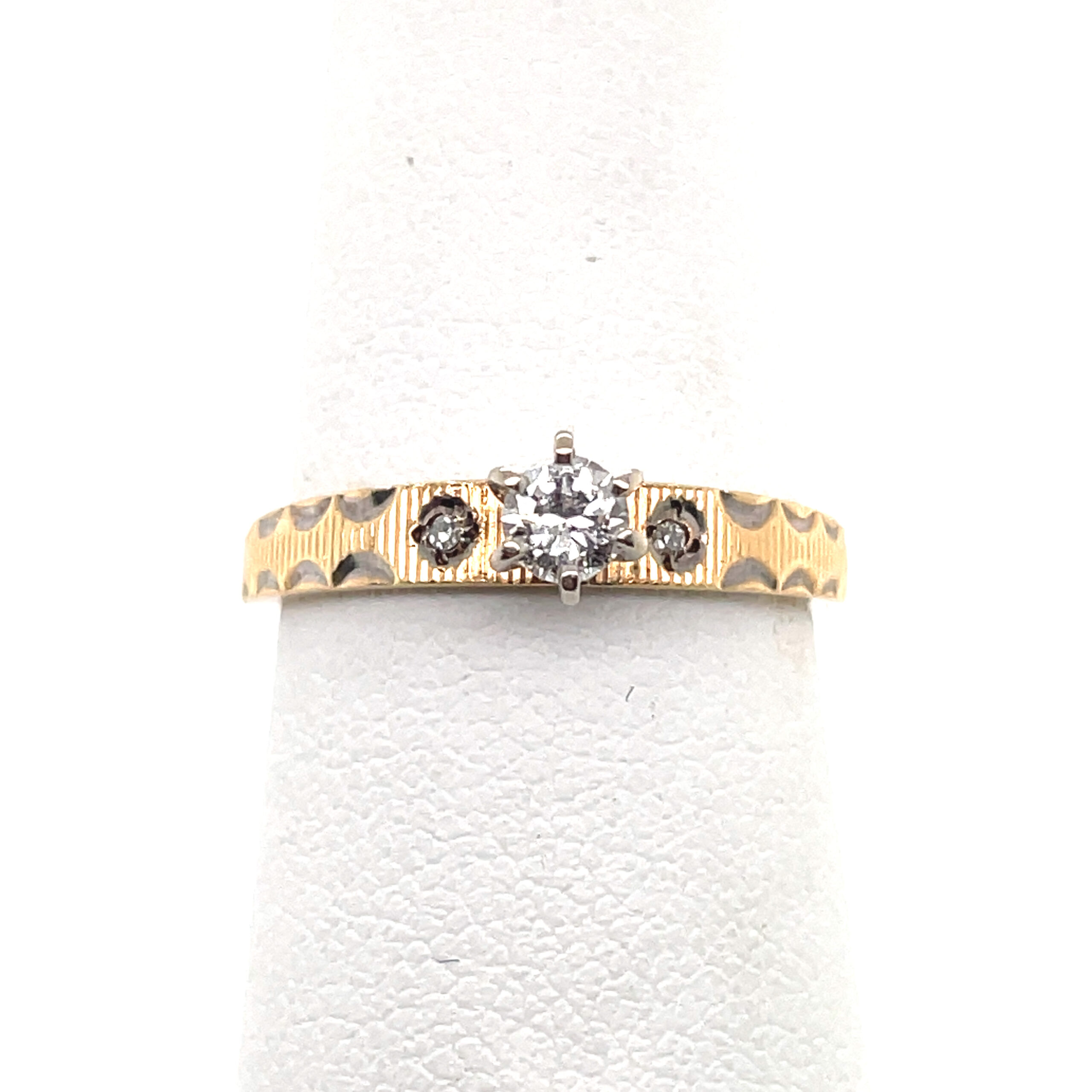 Diamond Ring With Crimped Design in 14KYG