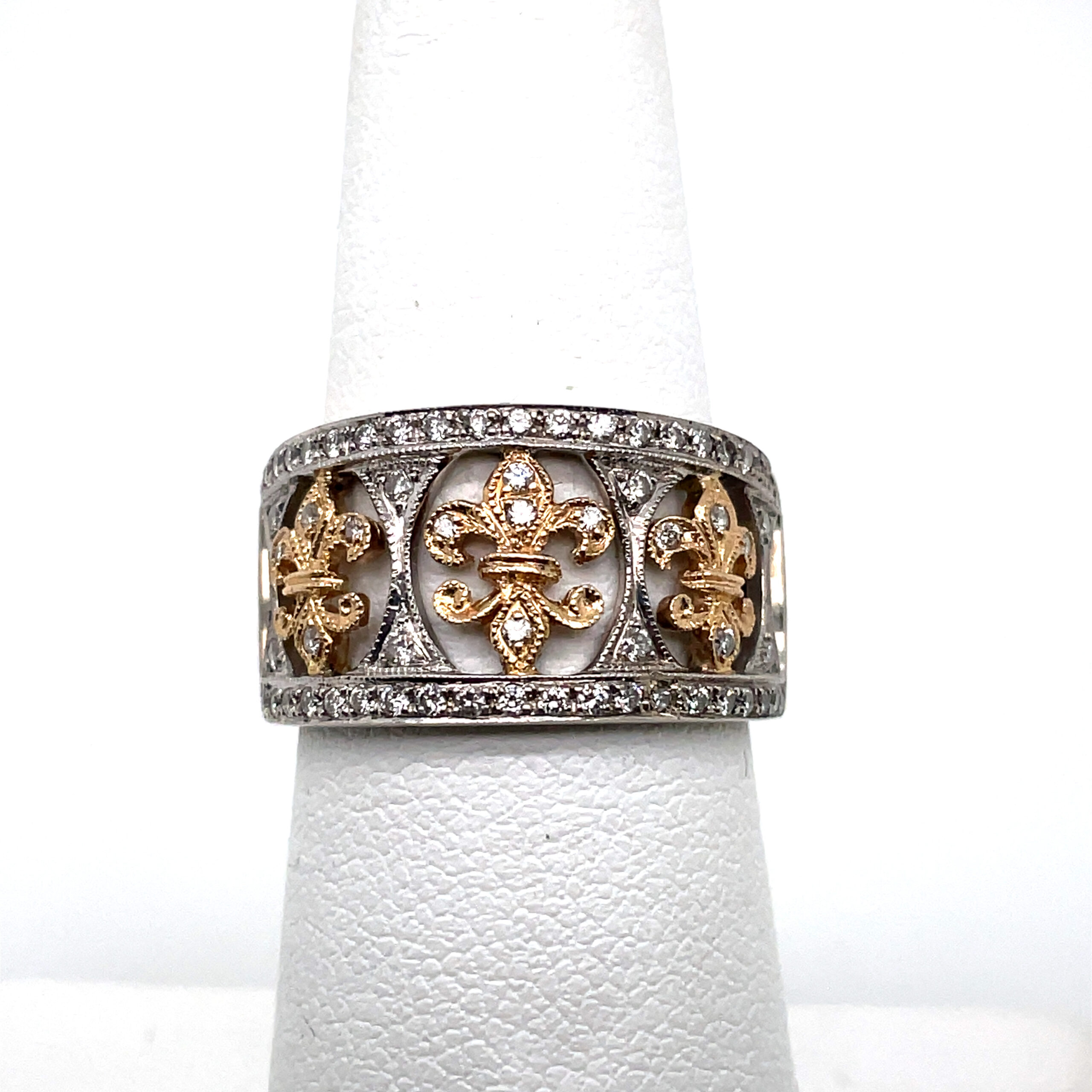 Fleur-de-Lis Diamond Ring in 14K Two-Tone Gold. 63 diamonds to equal 0.48ctw.