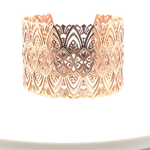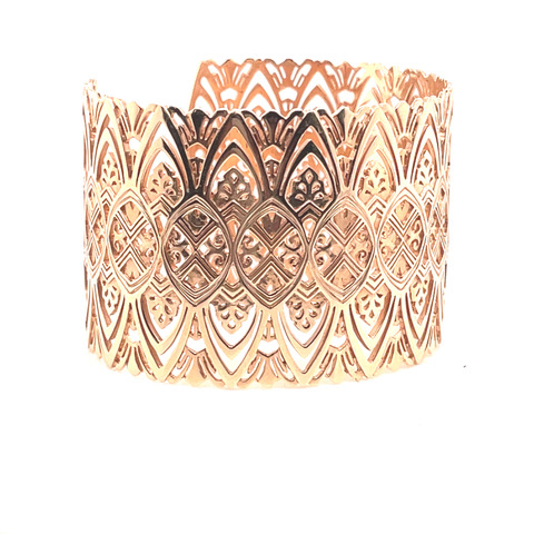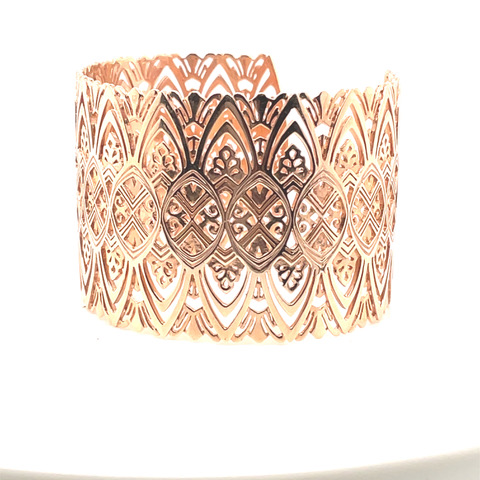 Mia Patterned Cuff in 14KRG. Designed in house by Mia Kaston, this boutique, patterned cuff is cast in 14 karat rose gold.