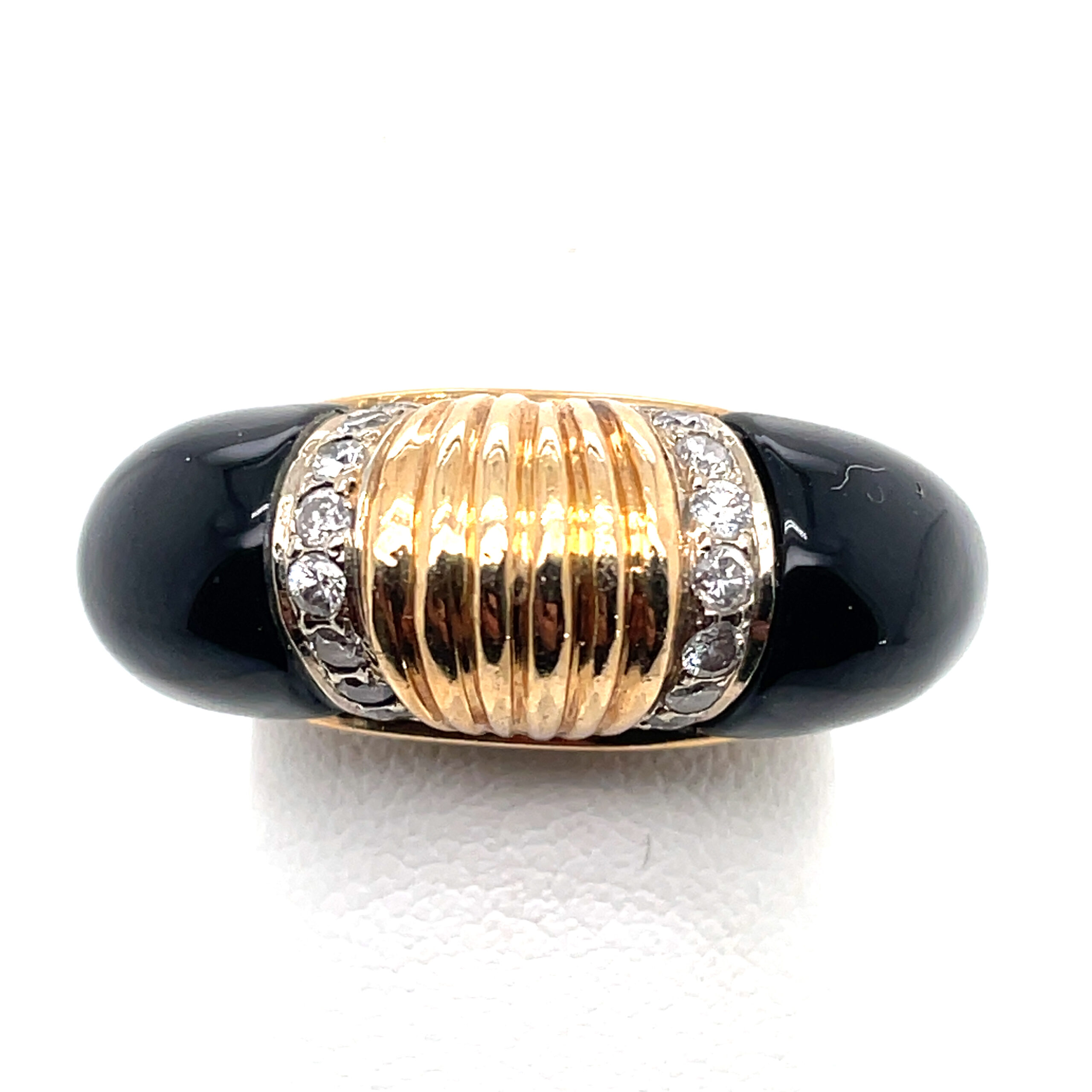 / Onyx Ring with Diamonds and Yellow Gold Tufts in 14KYG
