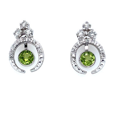 Peridot and Diamond Crescent Earrings in 14KWG