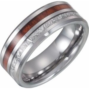 / Tungsten Band with Imitation Meteorite & Wood Inlay Size 11.5